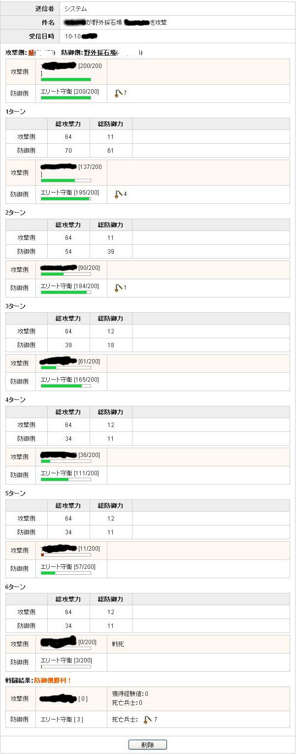 高速サーバーでの資源地防衛のログを忘れていた