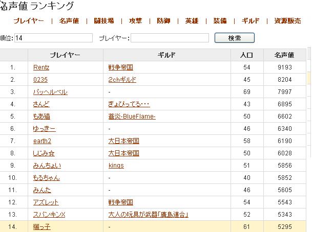 名声1000超えていて 130資源地を持ってる人は少し警戒したほういい。夜9時現在。